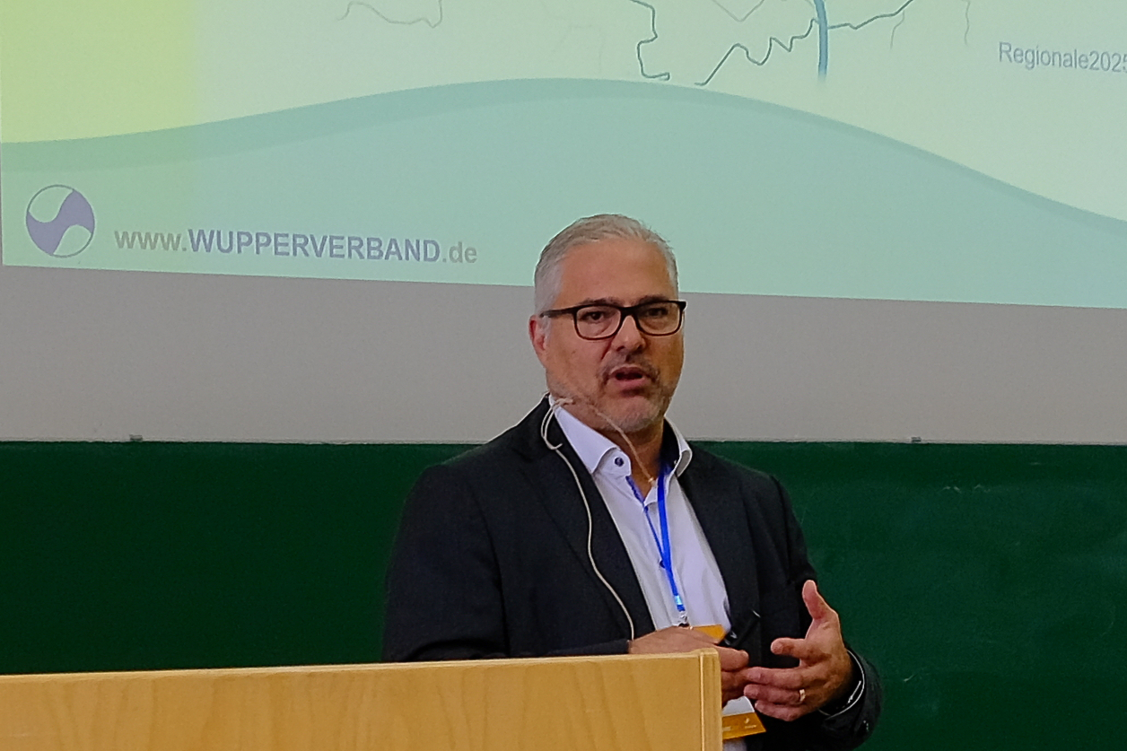 Am 7. und 8. Oktober 2025 fand die synergetische Fachkonferenz Klimaangepasst leben der Bergischen Universität Wuppertal und dem Wupperverband mit dem HochwasserKompetenzCentrums e.V. statt. Gemeinsam mit Vertreter*innen aus Kommunen, Wissenschaft, Wirtschaft und Zivilgesellschaft diskutierten wir über Herausforderungen, Best Practices und Zukunftsperspektiven der Klimaanpassung und widmeten uns den Fragen: